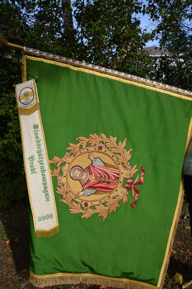Das Motiv der Schützenfahne ist ein Bildnis vom Herzen Jesu “Dem heiligen Herz Jesu gewidmet und geweiht”. Auf der Rückseite befindet sich der Tiroler Adler mit der Aufschrift “Standschützenkompagnie Pradl 1840 - 1988”.